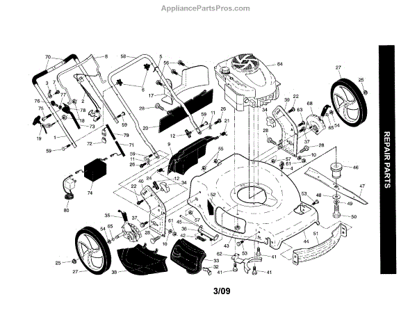 Parts for Craftsman 917374070: Handle / Engine / Housing Parts