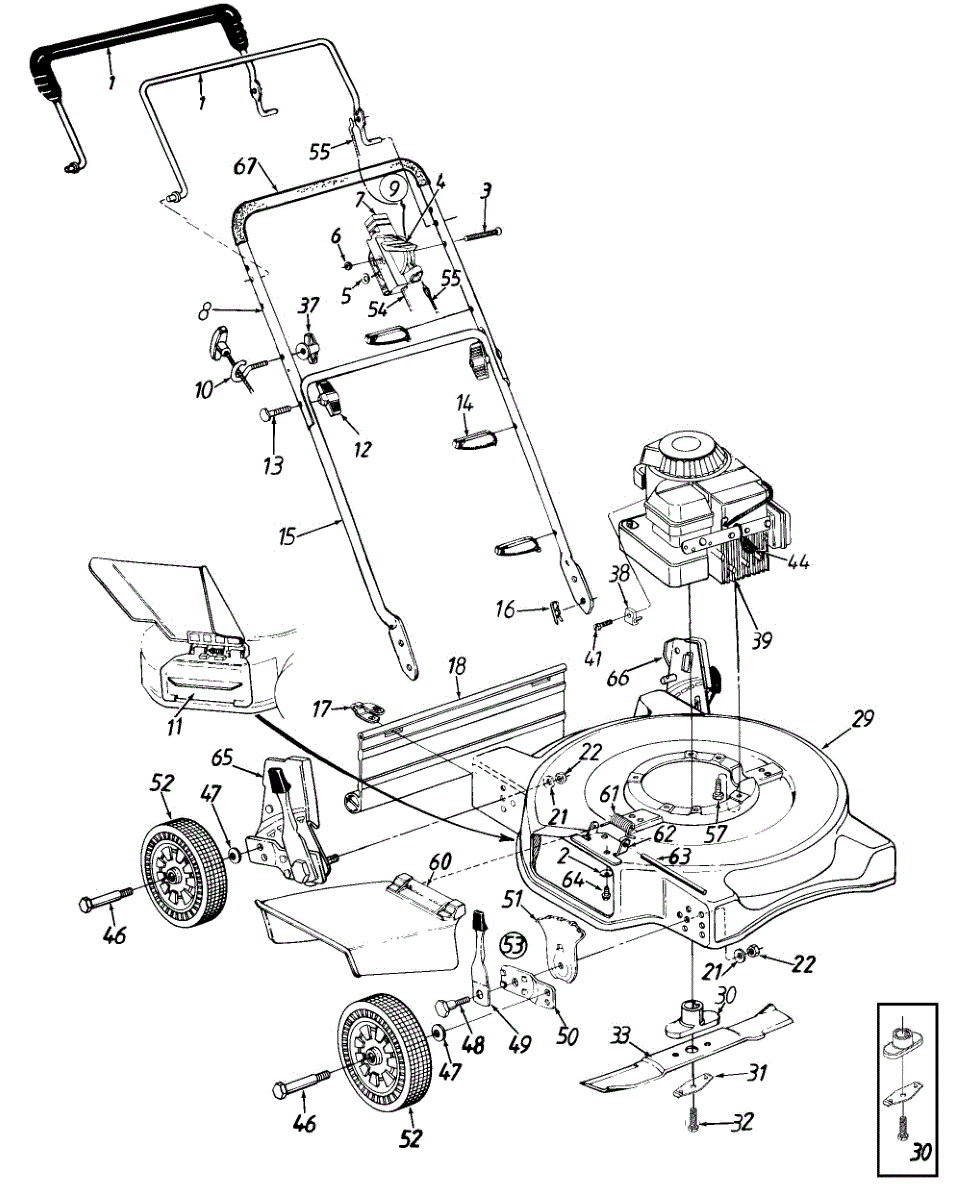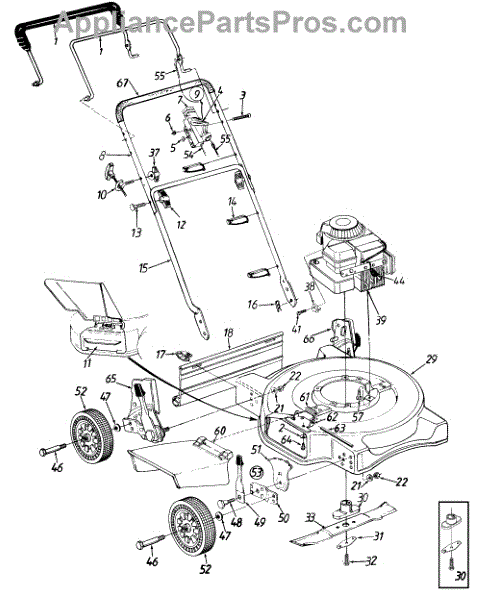 This is the front wheel assembly that is used by a large number of manufactures as the standard wheel for push mowers. This wheel is a tough, black rubber wheel fitted onto a sturdy white chassis. Since it is not a pneumatic wheel, there is no concern that it will roll over hidden debris and be damaged. Push wheels such as these often last the lifetime of a Lawn Mower. However, there are occasions when the housing of the mower is dropped and the wheel becomes warped or broken. It's also the case that, with constant use, the wheels can lose tread, making them harder to maneuver in tough mowing conditions. It has also been reported that the tires will wear and become smaller in circumference over time, meaning it will require more gasoline to mow the same amount of yard. The front wheels are easily replaced. After removing the plug cap and stabilizing the mower, simply use a socket wrench to remove the center bolt from the wheel. It's a good idea to use a dry lubricant like graphite on the axle before replacing it. This OEM guaranteed replacement part is compatible with Ryobi, Yard Machines, Troy-Bilt, Cub Cadet, Husky, Yard-Man, and MTD push mowers.