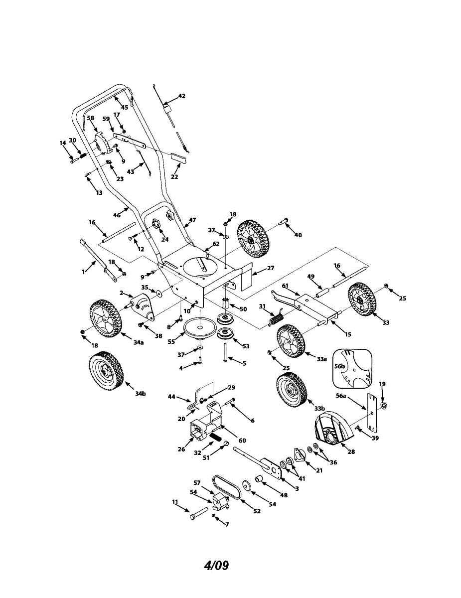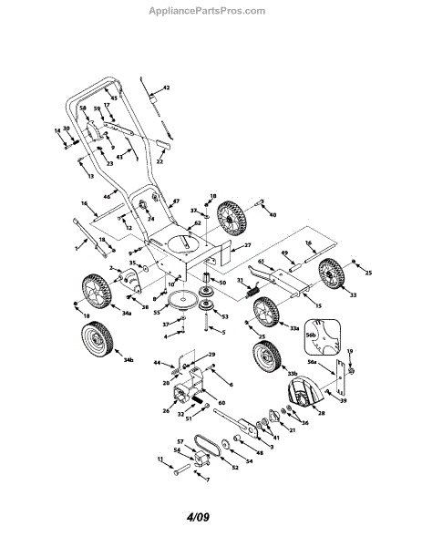 Replacement wheel assembly for walk-behind mowers and lawn equipment. Installs on axle to restore mobility. Order when wheel is cracked, broken, or worn.