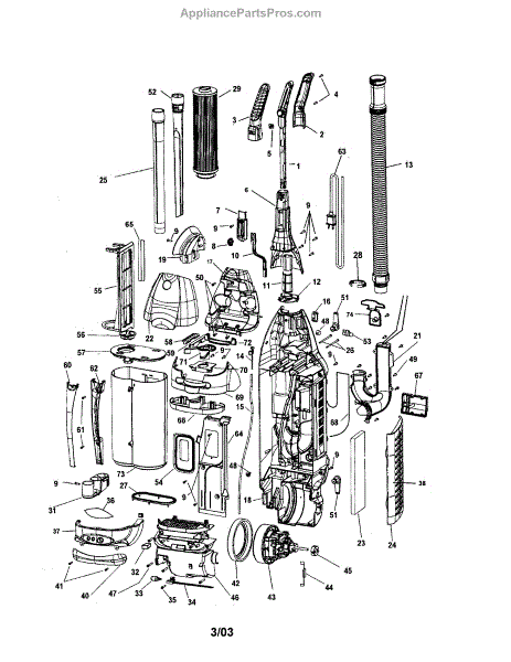 Parts for Hoover U6616-900: Handle / Hose / Motor Cover Parts