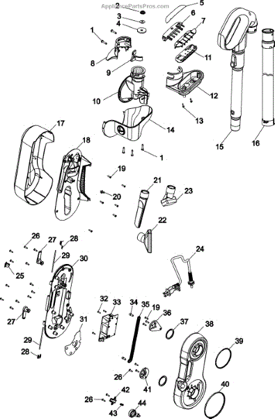 Parts for Hoover U9125-950: Handle, Hose And Upper Pivot Asy Parts