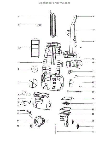 Parts for Eureka 4388BH-1: Handle / Motor Cover / Motor Parts
