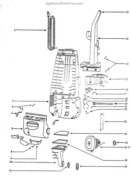 Parts for Eureka 4480ATF: Handle And Motor Housing Parts