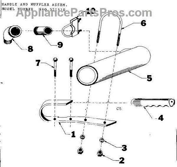 Parts for Craftsman 580321510: Handle And Muffler Assem. Parts