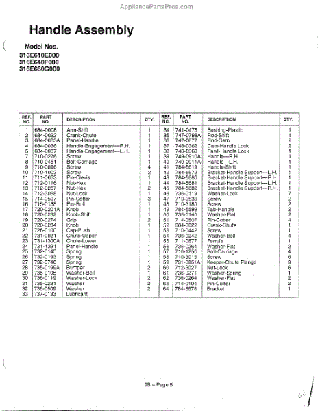 Parts for Mtd 316E610E088: Handle Page 2 Parts