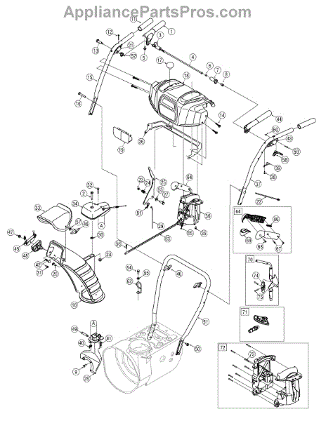This lower chute is a quality replacement part that is used on several models of snowblowers. It is made of high-quality plastic for durability and is placed so it can direct snow in a certain direction when it leaves a snowblower. Over time and with regular use, this part can become damaged. If this occurs, it will need to be replaced so the discharged snow ends up in the right location.When replacing the lower chute, a wrench and work gloves will be needed. The snowblower should be placed on a flat surface, and the spark plug wire needs to be disconnected. The gearbox and the lower chute will need to be removed before the new replacement part can be installed. Line up the chute and install it used the cotter pin and flange lock nut. Replace all the components before using the snowblower.This is an authentic OEM replacement part that is sourced directly from the manufacturer. It is sold on an individual basis. The lower chute is used with snowblowers manufactured by Craftsman, Cub Cadet, Huskee, MTD, Troy-Bilt, Yard Machines, and Yard-Man.