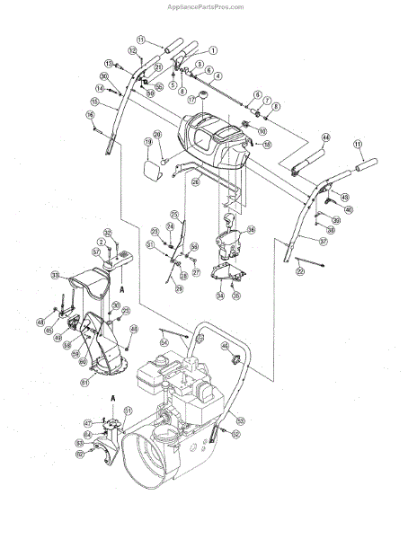 Right upper handle for snow throwers. Replaces damaged, cracked, or broken handles. Essential structural component for control and operation.