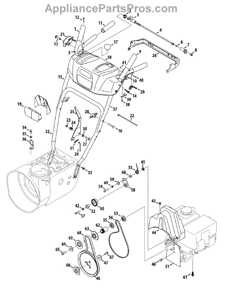 This part is a replacement handle. This part can be used to replace a defective or broken handle in a variety of snow blower models. The handle allows the user to properly and safely control and maneuver the equipment. This part may become detached, dented, bent, or otherwise damaged over time, requiring replacement. When working on or near an engine, it is important to ensure that it is powered off and completely cool before beginning any repairs.As an authentic replacement part from MTD, this handle is suitable for use on snow blowers that have been manufactured by MTD, Craftsman, Troy-Bilt, and other brands. This is a genuine OEM part made of high-quality, durable materials and is sold individually.