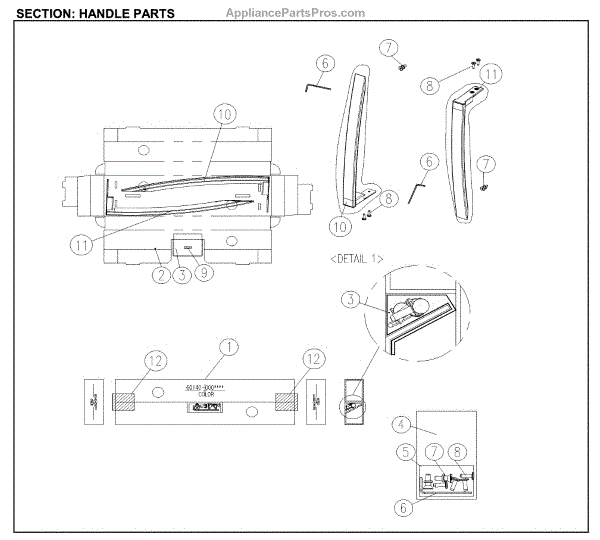 Parts for Kenmore 111.61205712 (11161205712, 111 61205712): Handle Parts