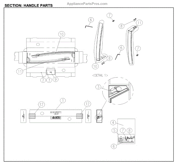 Parts for Kenmore 111.61209712 (11161209712, 111 61209712): Handle Parts