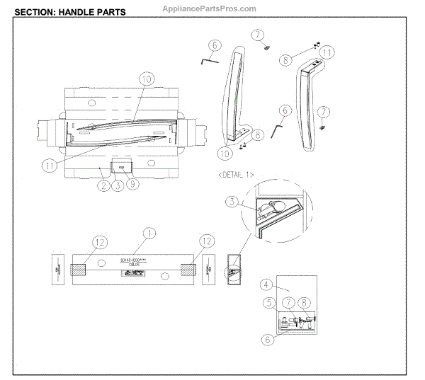 Parts for Kenmore 111.61209714 (11161209714, 111 61209714): Handle Parts