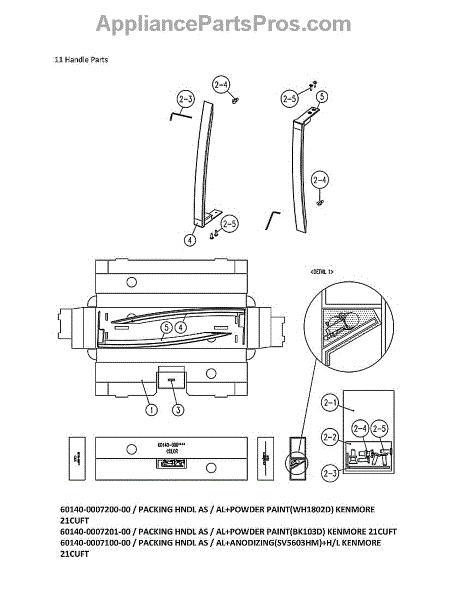 Parts for Kenmore 111.61211615 (11161211615, 111 61211615): Handle Parts