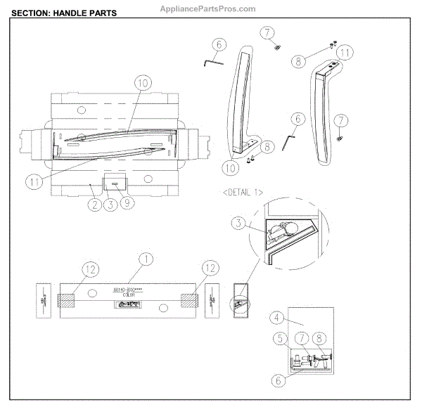Parts for Kenmore 111.71212613 (11171212613, 111 71212613): Handle Parts