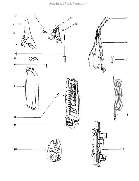 Parts for Eureka 7773ATS-1: Handle / Rear Housing / Bag Cover Parts