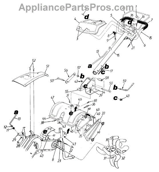 Parts for Yard Machines 21A-415-132 / 1998: Handle & Tine Parts