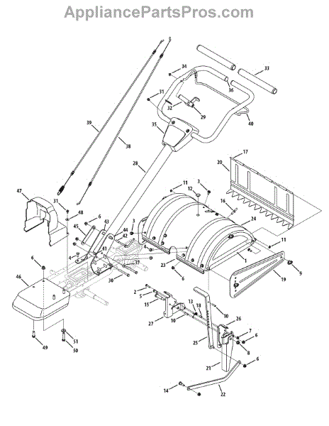 This replacement part is a tiller flap intended for use on lawn mowers. It protects the user and equipment from flying debris that might cause harm during use.A new tiller flap might be needed if the current one is missing or damaged at all. This can include the part being torn, bent, or cracked in any way. This part can be damaged after years of normal wear and tear and should be replaced if this is the case. Be sure the engine is powered off before attempting to replace or repair this part. This is a genuine OEM replacement part manufactured by MTD. This part is sold individually.