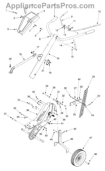 This replacement part is a bracket wheel assembly intended for use in lawn mowers. This is a genuine replacement part made by MTD. This part is used to assist the wheels of a lawn mower so that they stay secure and in place while the appliance is in use.A new bracket wheel assembly might be needed if the current one is damaged or broken in any way. If the user notices that the wheels are not attached properly or the machine is moving in directions other than what is being prompted, the part might need to be replaced. Be sure the appliance is completely powered down and cooled off before attempting to replace this part. For more detailed instructions on how to replace this specific part, please reference the user guide or manual for the appliance. This is an OEM part sourced directly from the manufacturer. It is sold individually. This replacement part is compatible with lawn mowers made by MTD.