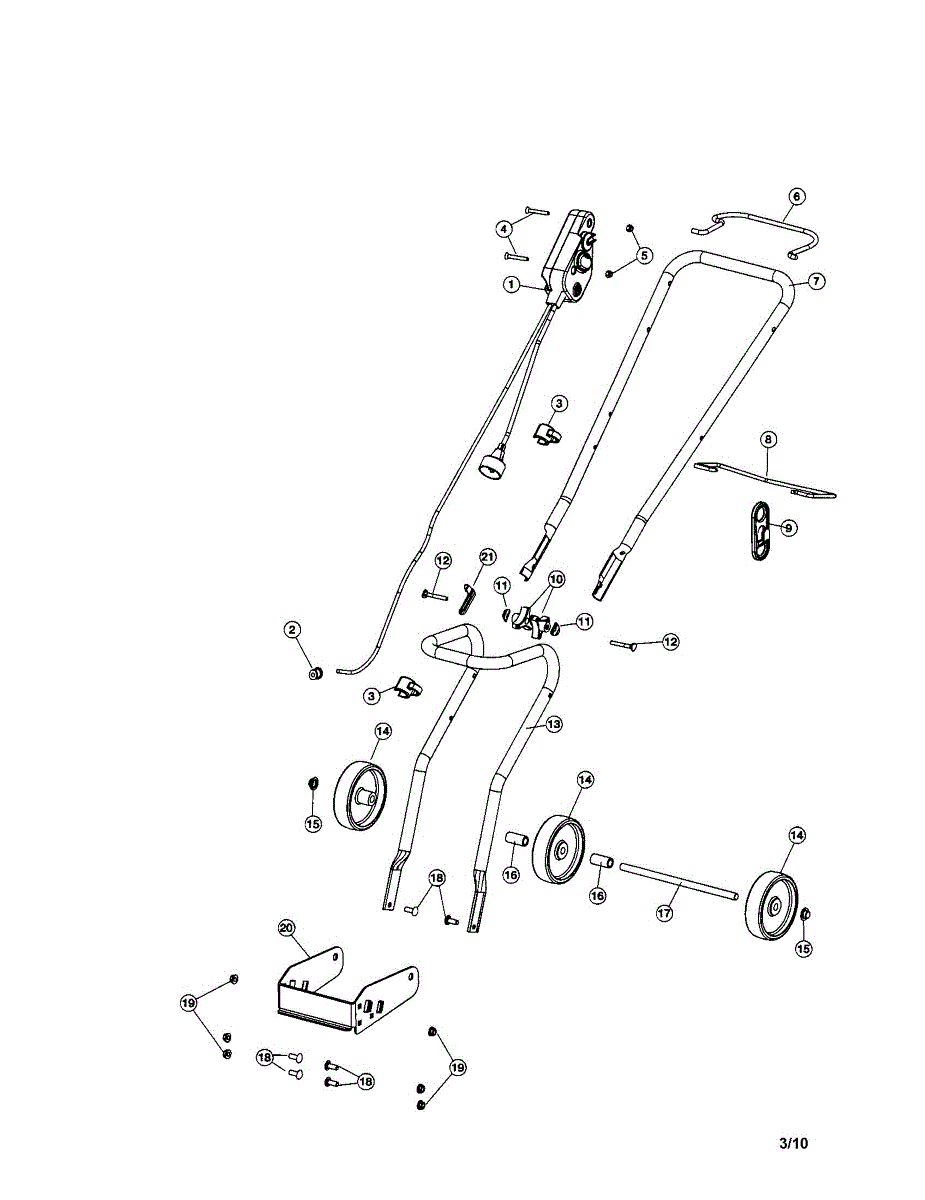 Carriage bolt for lawn mowers and outdoor power equipment. Fastens components together with a nut. Replace if lost, stripped, or damaged during repair.