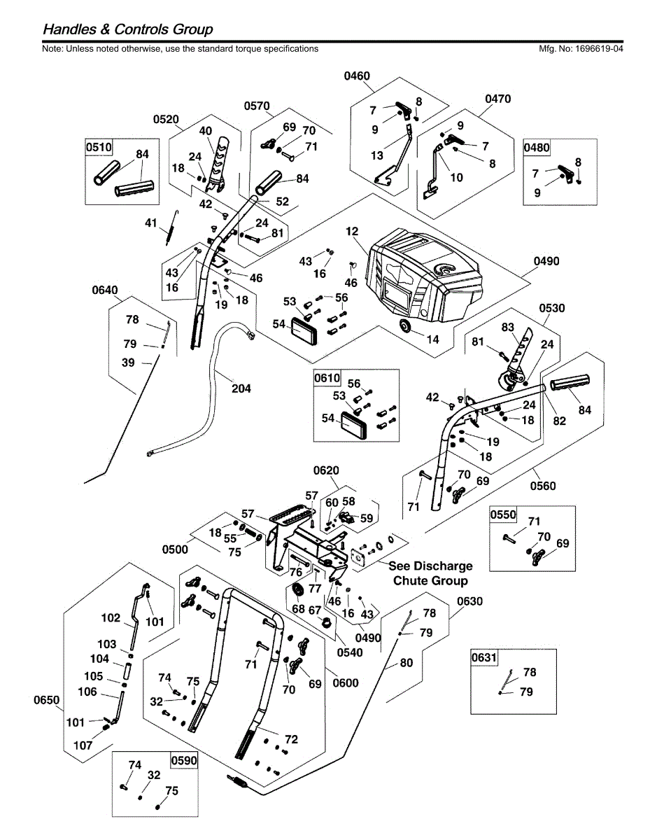 Parts for Briggs & Stratton 1696619-04: Handles & Controls Parts