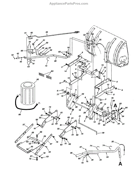 This welded base assembly forms the lower chassis of the unit, supporting the cabinet and mounted components. Replacing a bent, rusted, or damaged base restores structural integrity, alignment, and smoother, quieter operation.