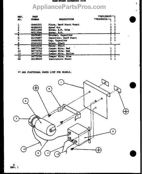 Parts for Amana VRCF42U01B/P9885214C: Hard-Start Accessory Kits Parts