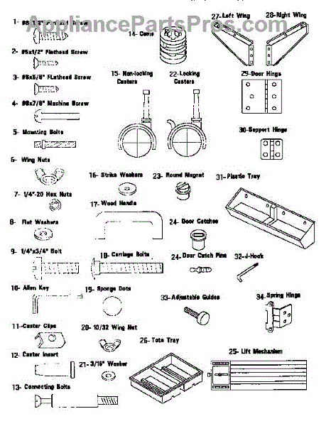 Parts for Kenmore 27299193.490: Hardware Included Parts
