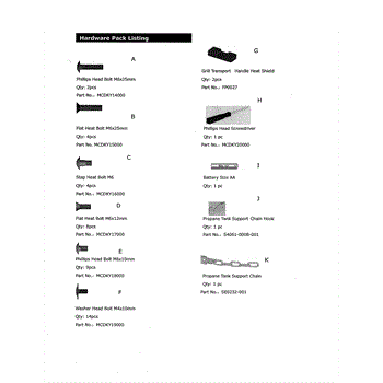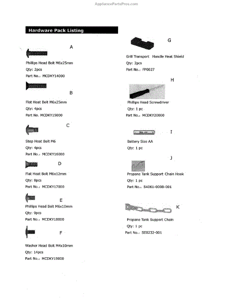 Parts for Kenmore 119.16126011 (11916126011, 119 16126011): Hardware Pack Parts