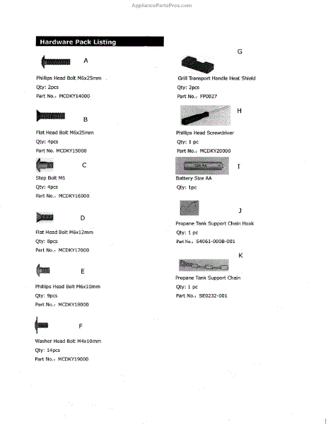 Parts for Kenmore 119.16148110 (11916148110, 119 16148110): Hardware Pack Parts