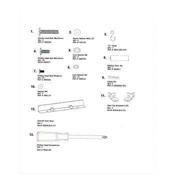 Parts for Kenmore 119.16301800 (11916301800, 119 16301800): Hardware Pack Parts