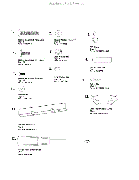 Parts for Kenmore 119.16302800 (11916302800, 119 16302800): Hardware Pack Parts