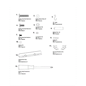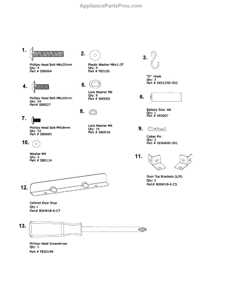 Parts for Kenmore 119.16311800 (11916311800, 119 16311800): Hardware Pack Parts