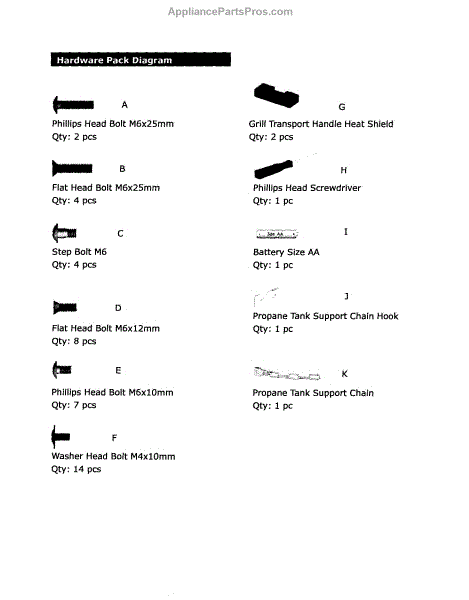 Parts for Kenmore 119.16126010 (11916126010, 119 16126010): Hardware Parts