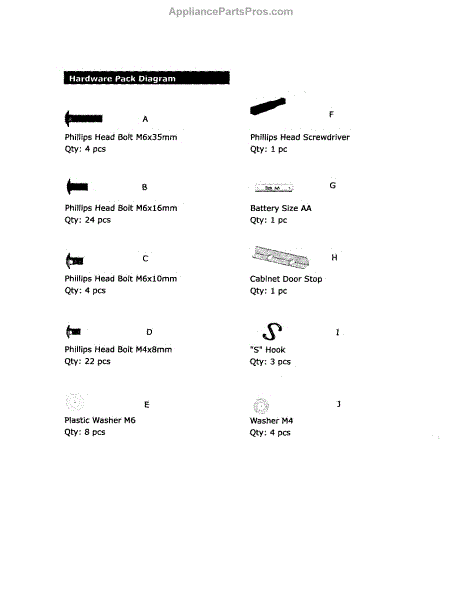 Parts for Kenmore 119.16658010 (11916658010, 119 16658010): Hardware Parts