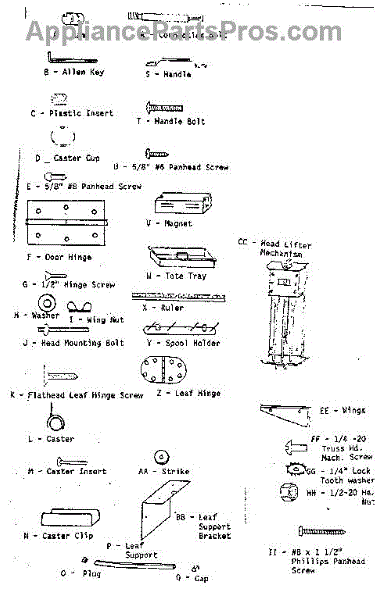Parts for Kenmore 272.9841382 (2729841382, 272 9841382): Hardware Parts