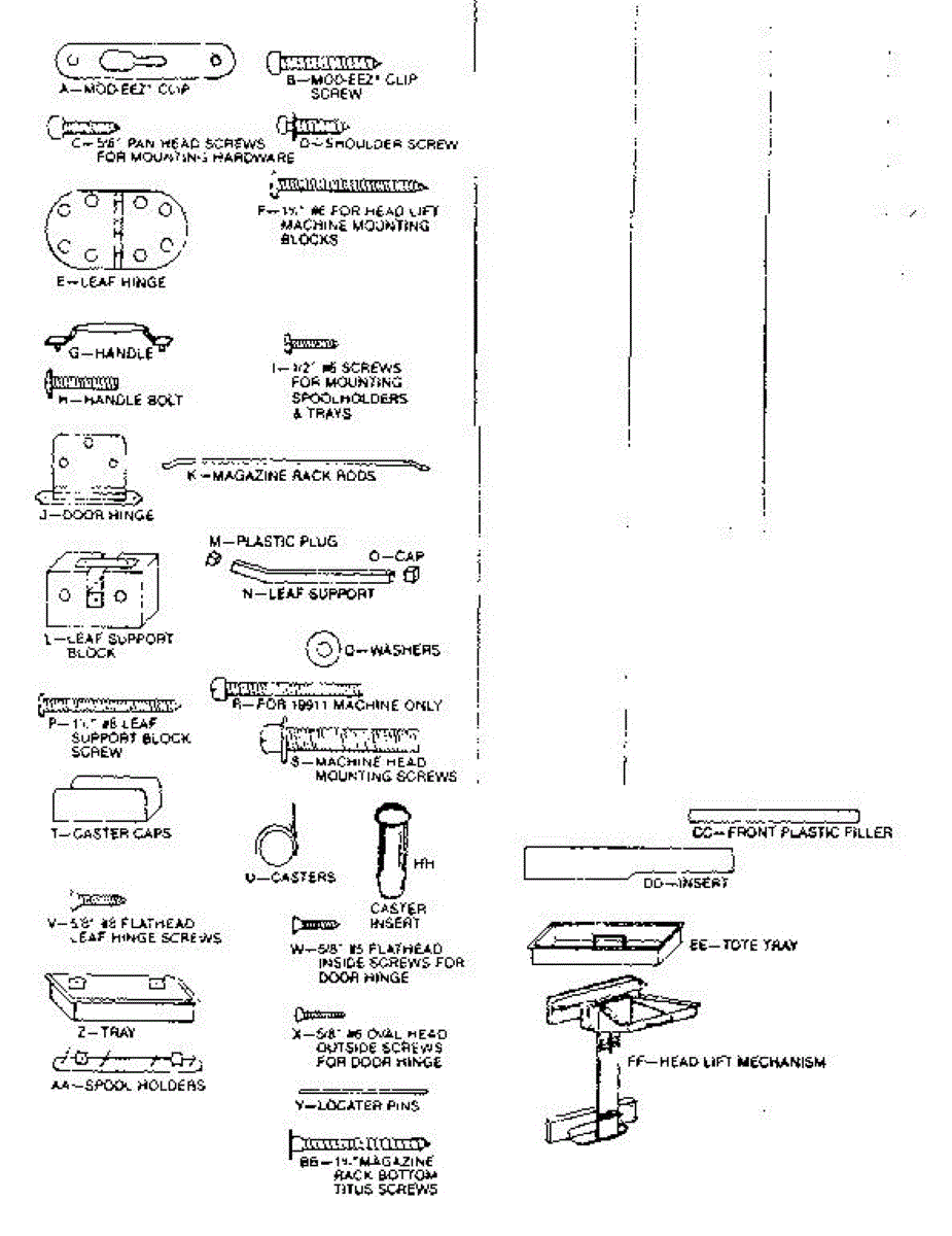 Parts for Kenmore 272.9851180 (2729851180, 272 9851180): Hardware Parts