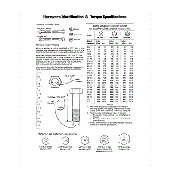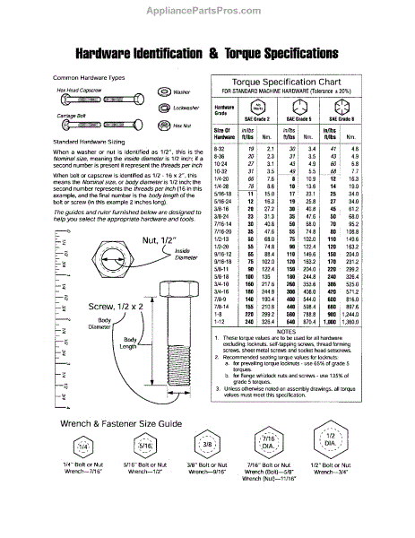 Parts for Craftsman 107287860: Hardware Id / Torque Specifications Parts