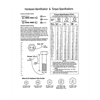 Parts for Yard King 425018X06A: Hardware Id / Torque Specs Parts