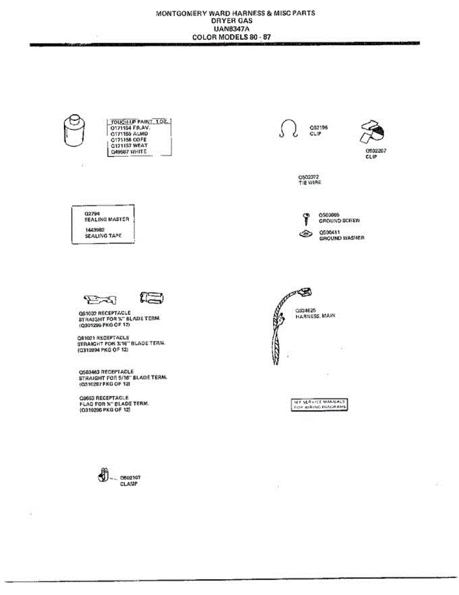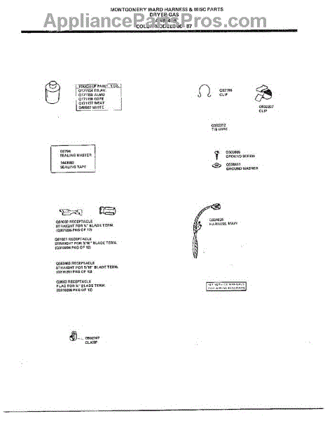 Parts for Frigidaire 8347A: Harness And Misc. Parts
