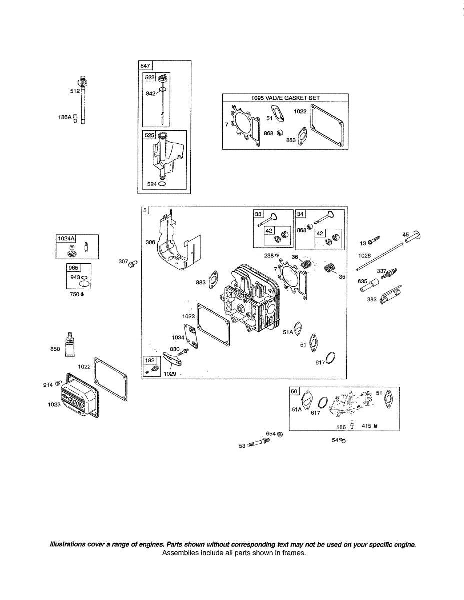 Parts for Briggs & Stratton 31C707-0525-B1: Head-Cylinder Parts
