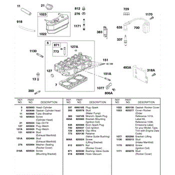 Parts for Briggs & Stratton 581447-0375-E2: Head, Rocker Cover, Ignition, Breather Hoses Parts