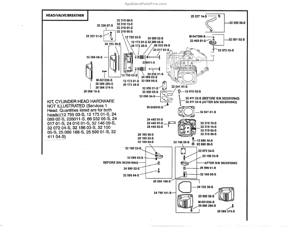 Parts for Kohler SV730-0034: Head / Valve / Breather Parts