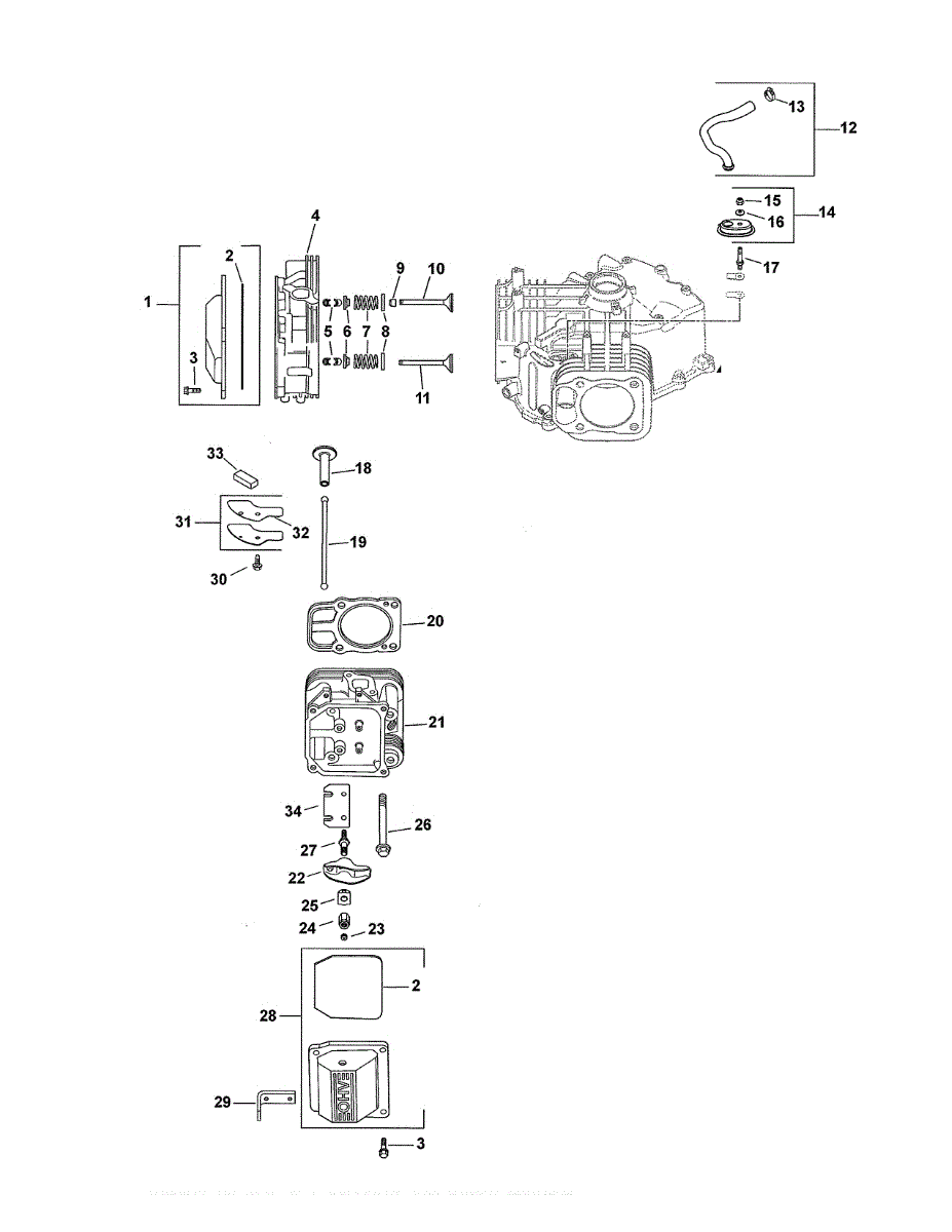 Parts for Kohler SV735-3016: Head / Valve / Breather Parts