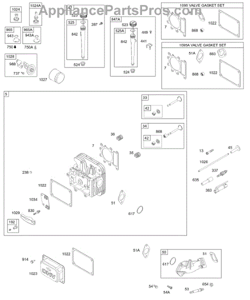 Parts for Briggs & Stratton 287707-0112-01: Head, Valve Gaskets, Oil Filter, Dipstick Parts