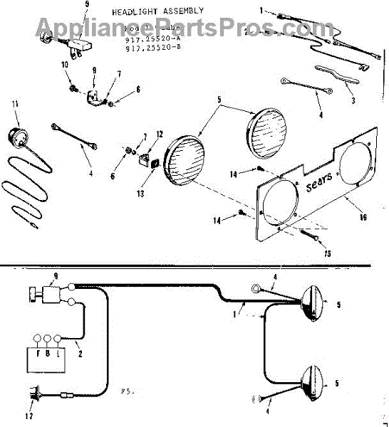 Parts for Craftsman 91725520-A: Headlight Asm. Parts