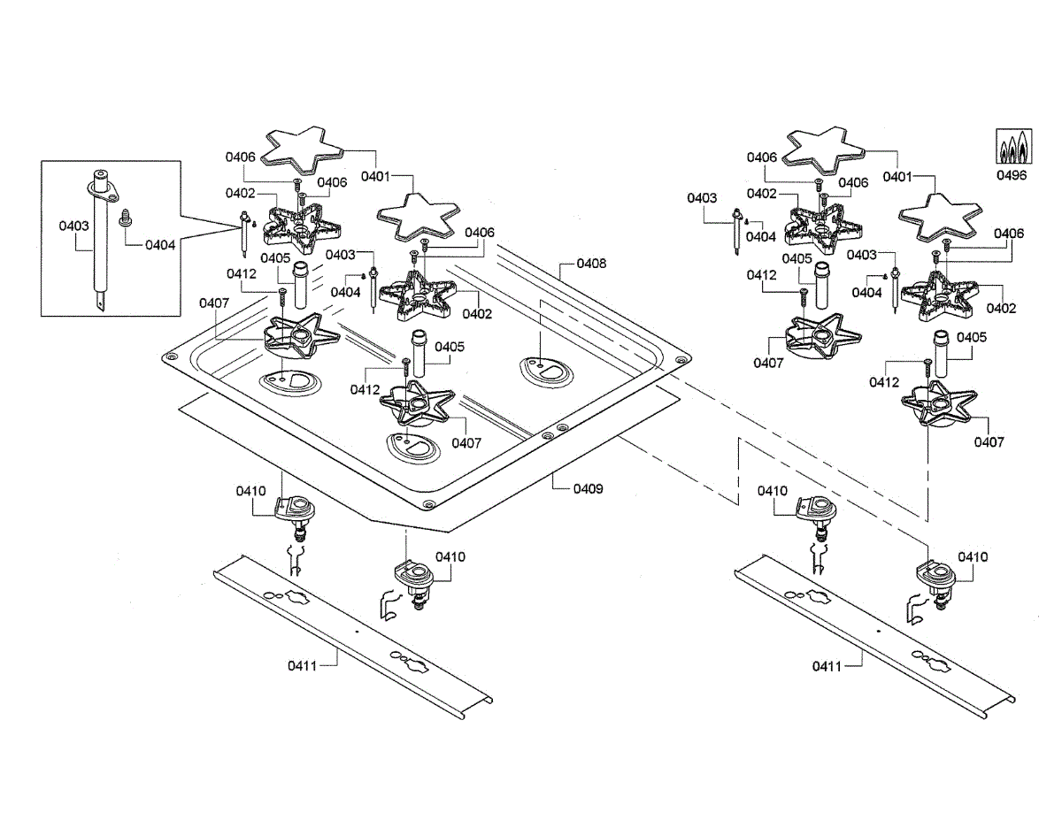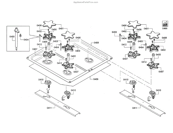 Replace your damaged or worn range cooktop surface. This hob top assembly installs on top of your range and needs replacement when cracked or chipped.
