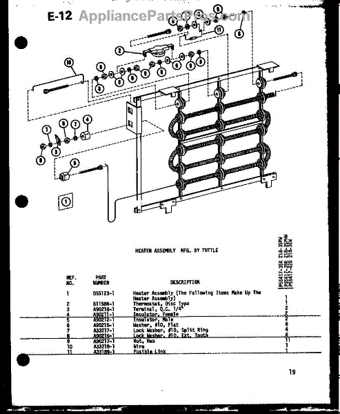 Parts for Amana 218-3SPW/P55417-35R: Heater Assembly Parts