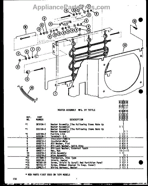 Parts for Amana 113-3N/P54975-3R: Heater Assembly Mfg. By Tuttle (109-3Ne / P54975-4R) (109-5Ne / P54975-8R) (113-5Ne / P54975-9R) (113-3Ne / P54975-5R) Parts