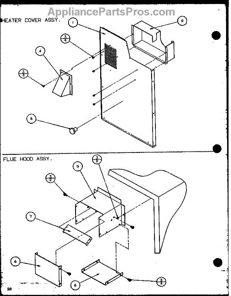 Parts for Amana PECE3A/P9850501C: Heater Cover Assy. / Flue Hood Assy. (Spcg360451a / P1105907c) (Spcg360453a / P1105908c) (Spcg360701a / P1105909c) (Spcg360703a / P1105910c) (Spcg360901a / P1105911c) (Spcg360903a / P1105912c) Parts