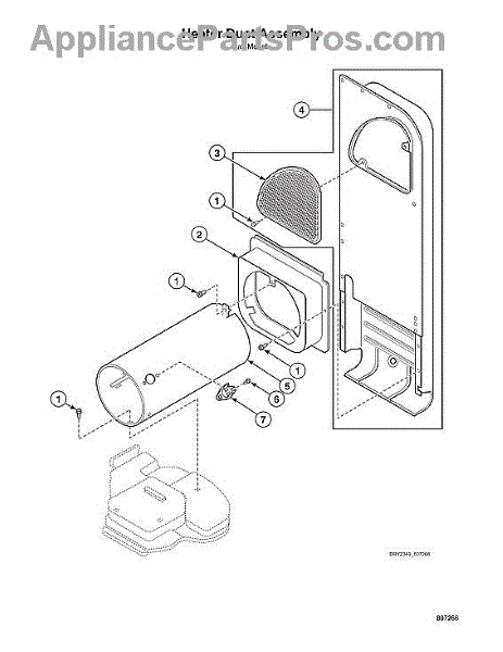 This heater duct assembly routes heated air from the dryer's heating unit to the drum so your loads dry efficiently and evenly. It replaces a damaged or obstructed duct to restore proper airflow and drying performance. What it does