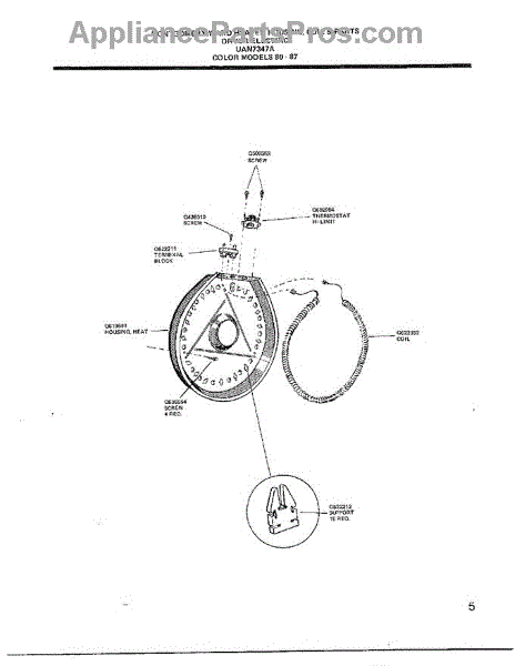 Parts for Frigidaire 7347A: Heater Housing, Coil And Parts
